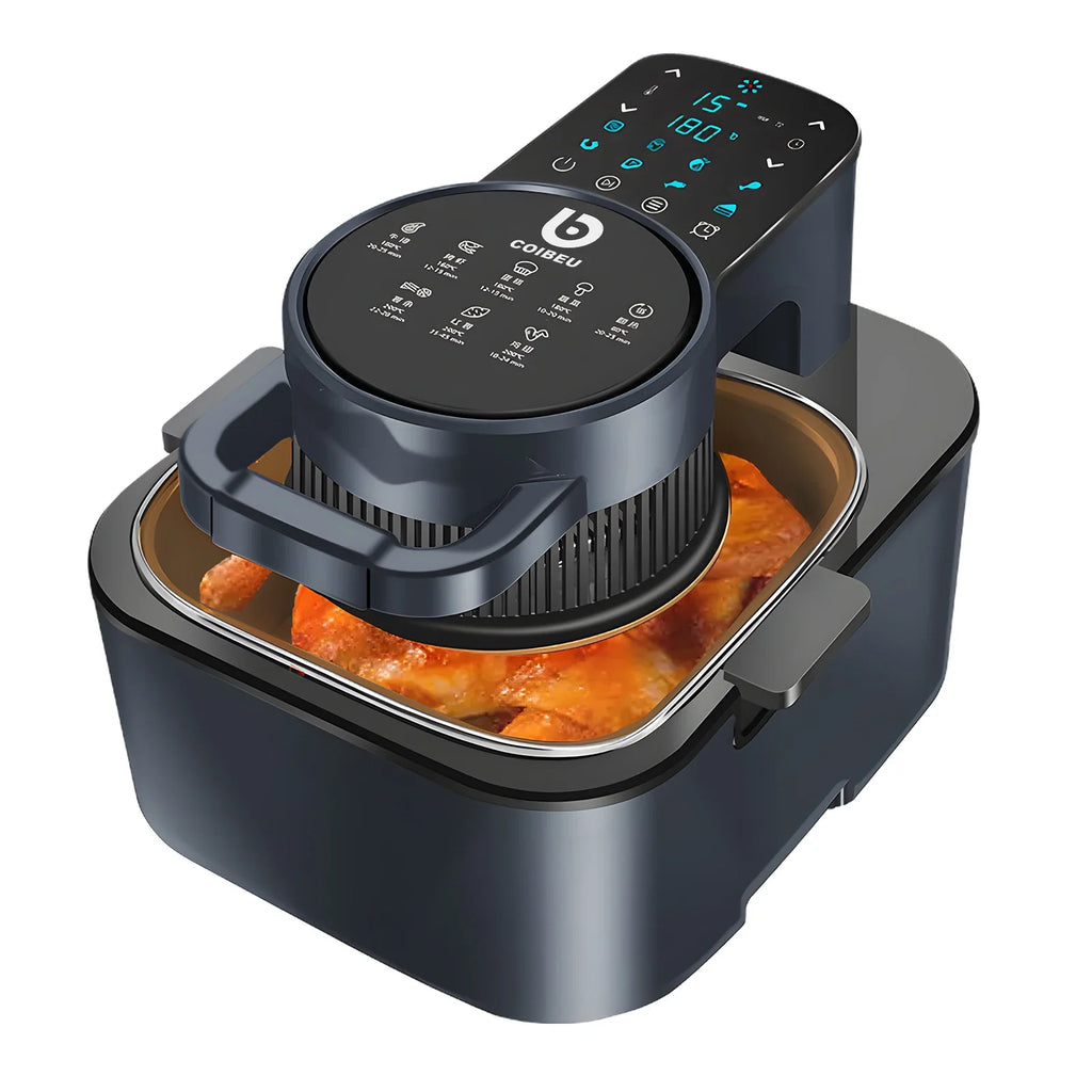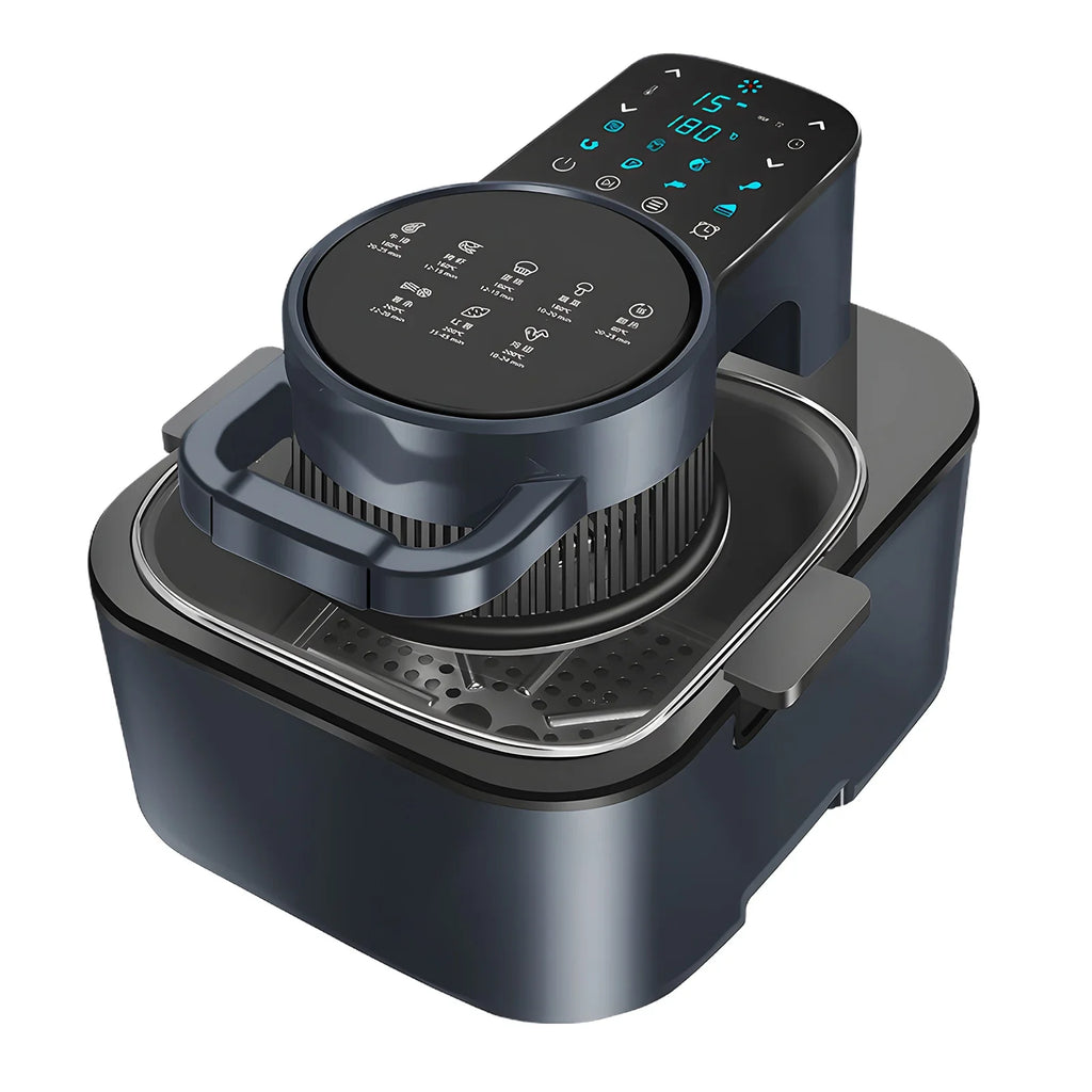 【Tecnologia de controle inteligente de temperatura】: Equipado com um sistema avançado de controle de temperatura e tecnologia de aquecimento rápido com circulação de ar quente de 360°. Substitui o óleo quente por ar, reduzindo a gordura dos alimentos, promovendo uma alimentação mais saudável e economizando energia.