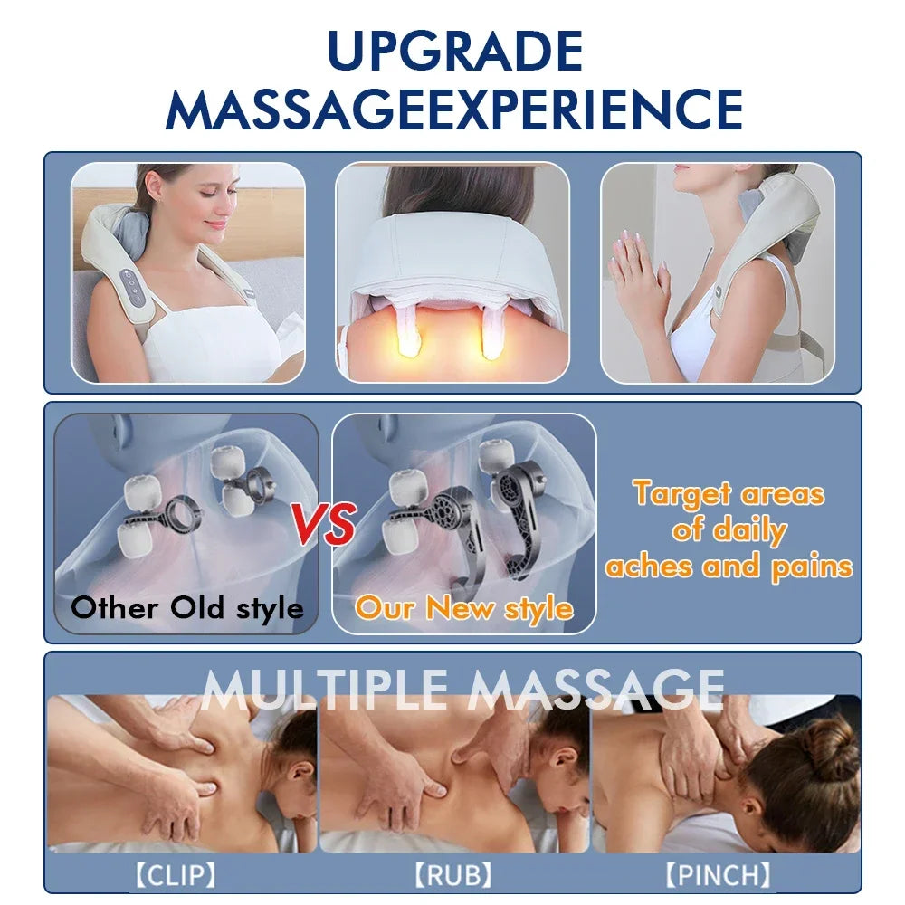 Massageador de Pescoço e Ombro Sem Fio 6D com Aquecedor Shiatsu e Massageador Cervical para Costas e Pescoço Elétrico
