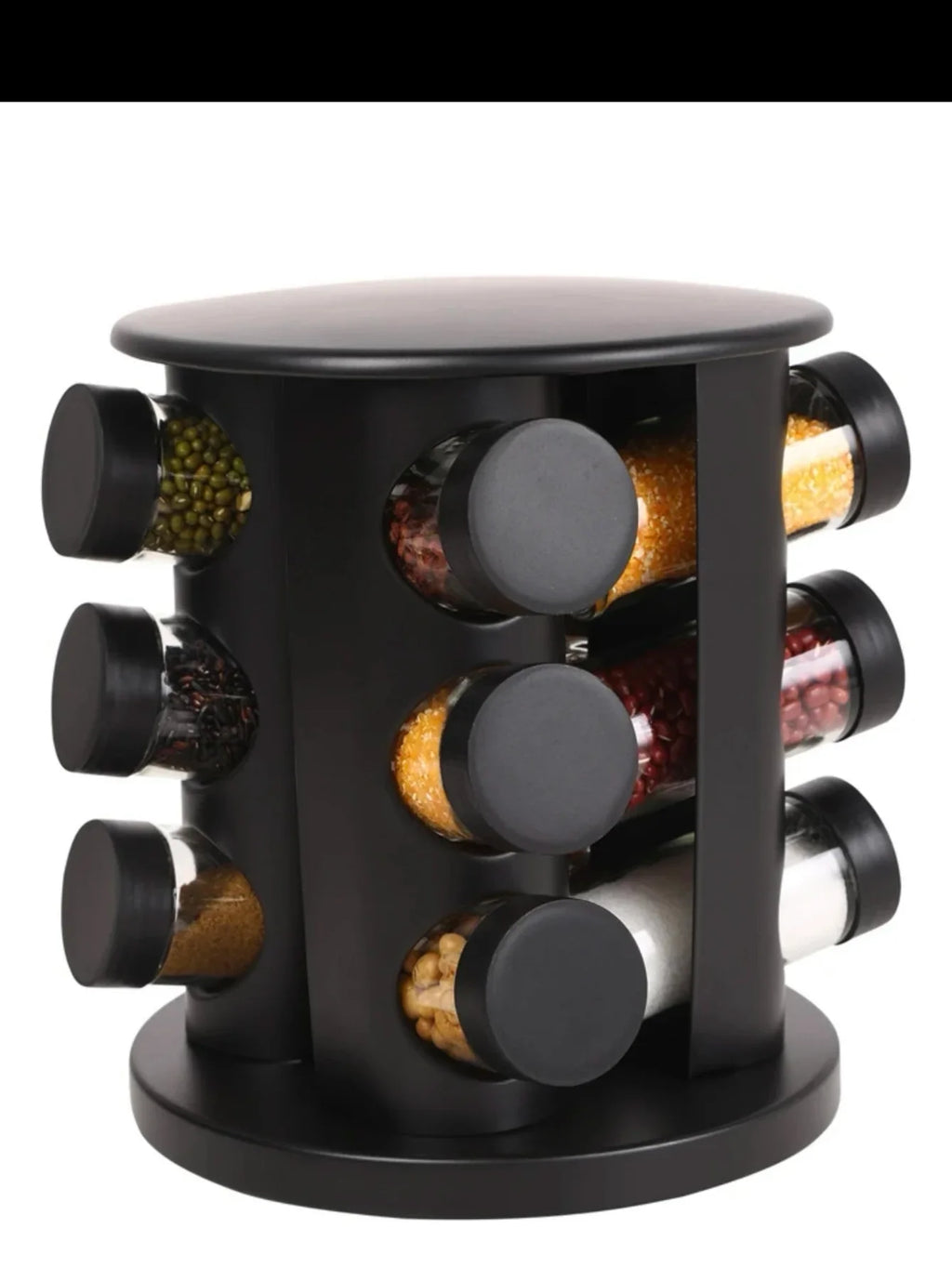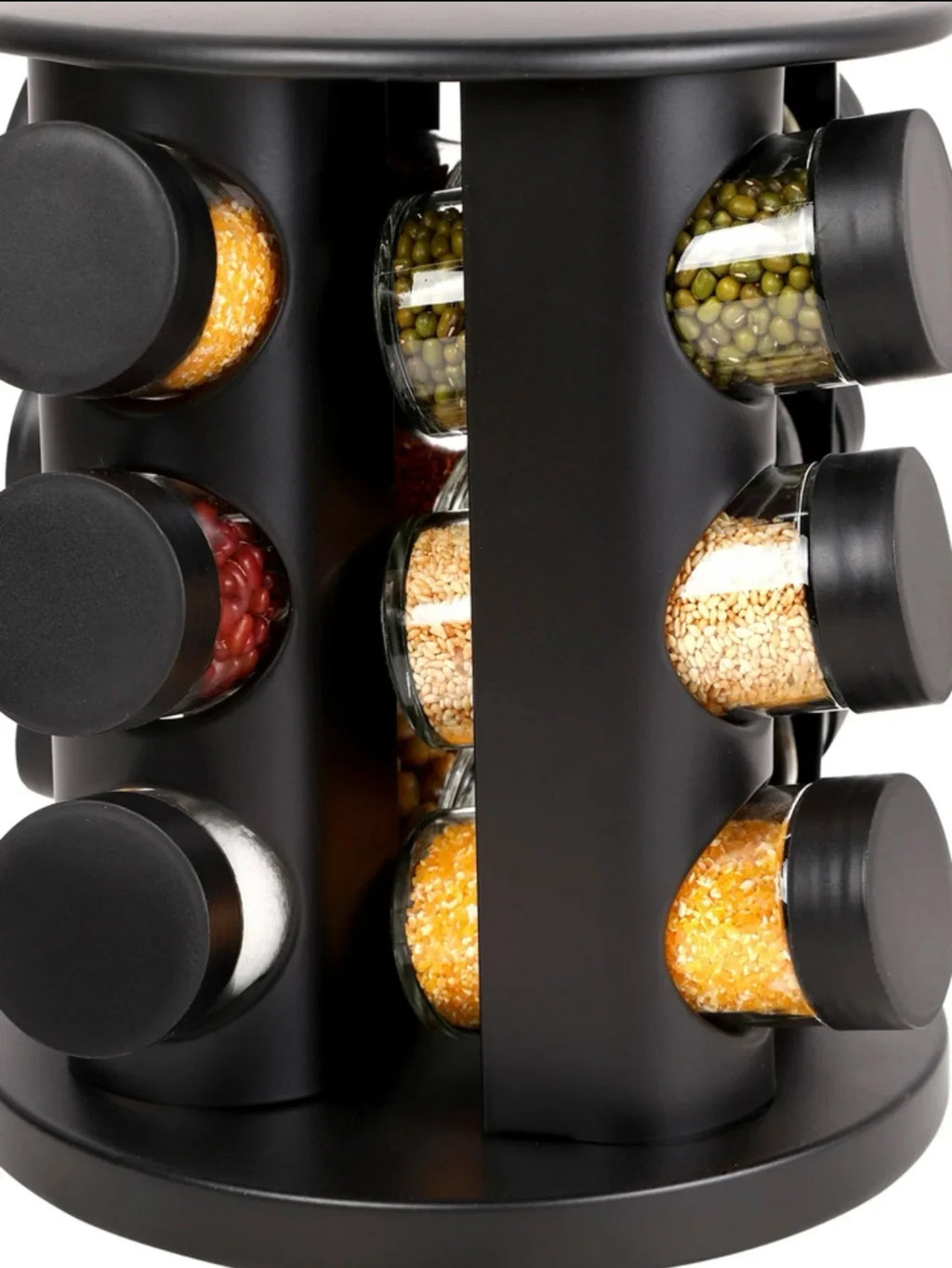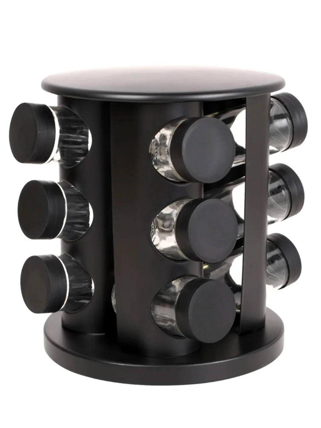 Eleve o nível da sua cozinha com o nosso sofisticado Porta Tempero Condimento Giratório em preto, acompanhado por 12 potes! Este acessório não só mantém os seus condimentos organizados, mas também adiciona um toque de modernidade à sua área de preparação de alimentos.