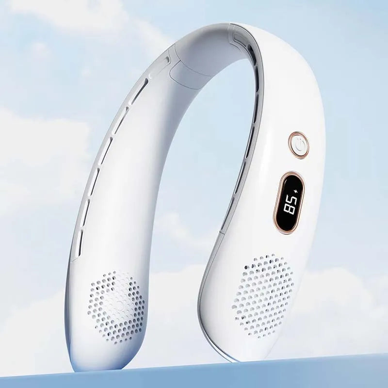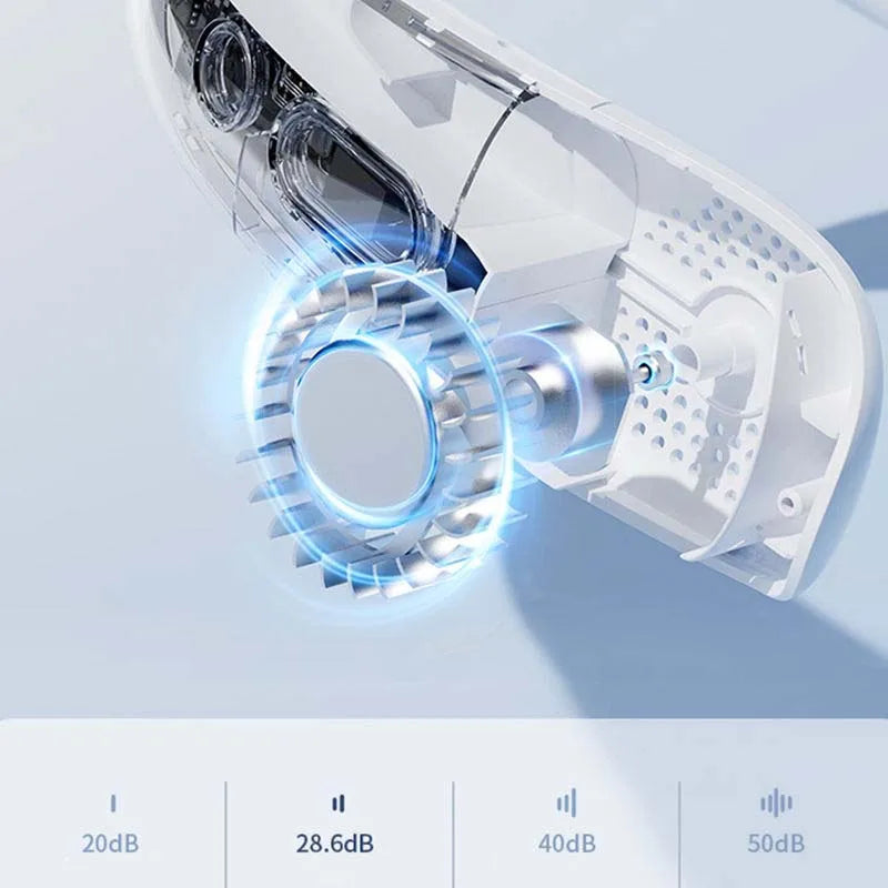 Projetado como um fone de ouvido, este ventilador mantém suas mãos livres onde quer que você vá, mantém você fresco o tempo todo, tornando-o um companheiro ideal para atividades internas e externas em clima quente.